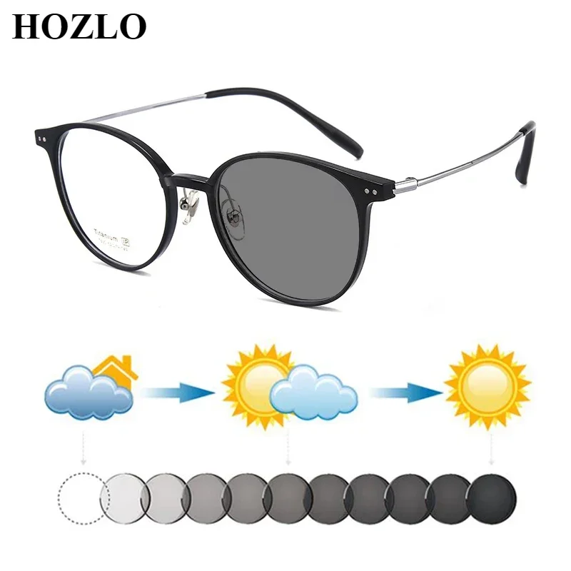New Women Retro Rivets Round Titanium Photochromic Myopia Sunglasses Men Shortisighted Shades Sun Glasses Driving Travel